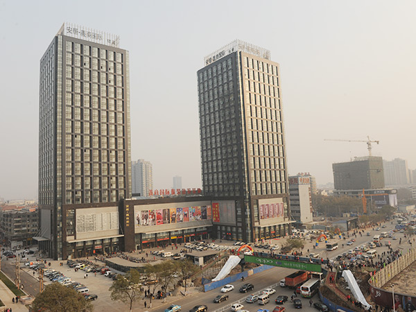 義商國際由三部分業(yè)態(tài)組成:第一部分為商業(yè),由5層裙樓和地下1層組成,包括購物中心、臨街商鋪、餐飲娛樂等,商業(yè)面積為36407㎡。第二部分為公寓(A座)及寫字樓(B座),由兩棟23層(6-28層)主樓組成,建筑面積為65109㎡,其中公寓452套,寫字樓224套。第三部分為地下-2層停車場(chǎng),地下-3層人防工程(戰(zhàn)時(shí)可容納4000人的人防工程,平時(shí)為停車場(chǎng))組成,建筑面積18582㎡。